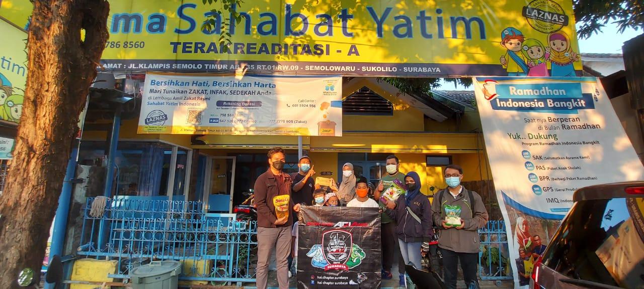 Berbagi berkah anggota HAI Surabaya kali ini dengan memberi santunan berupa paket sembako dan Uang tunai kepada Anak Yatim dan Dhuafa.