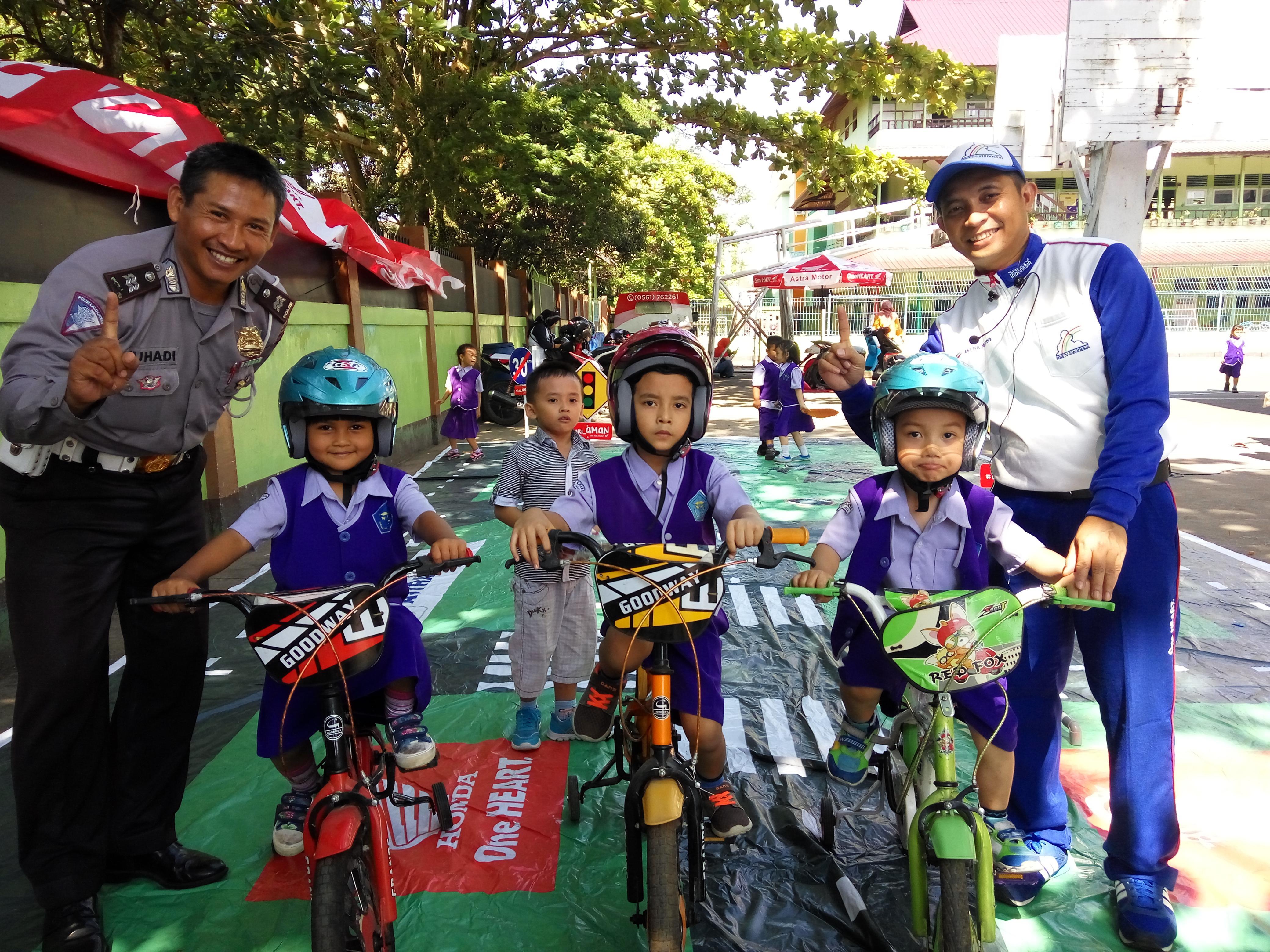 Tidak hanya bagi pengendara dewasa, Tim Safety Riding Honda Kalbar mencoba memulai keselamatan jalan sejak dini pada anak usia sekolah taman kanak-kanak.