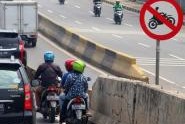 Pernahkah Brosis sedang asyik berkendara lalu terhenti karena melihat rambu larangan sepeda motor di mulut sebuah fly over atau JLNT