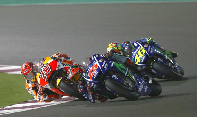 Qatar - Pebalap tim Repsol Honda Marc Marquez hanya berhasil finish di posisi empat dalam gelaran perdana MotoGP yang berlangsung di Qatar (26/3).