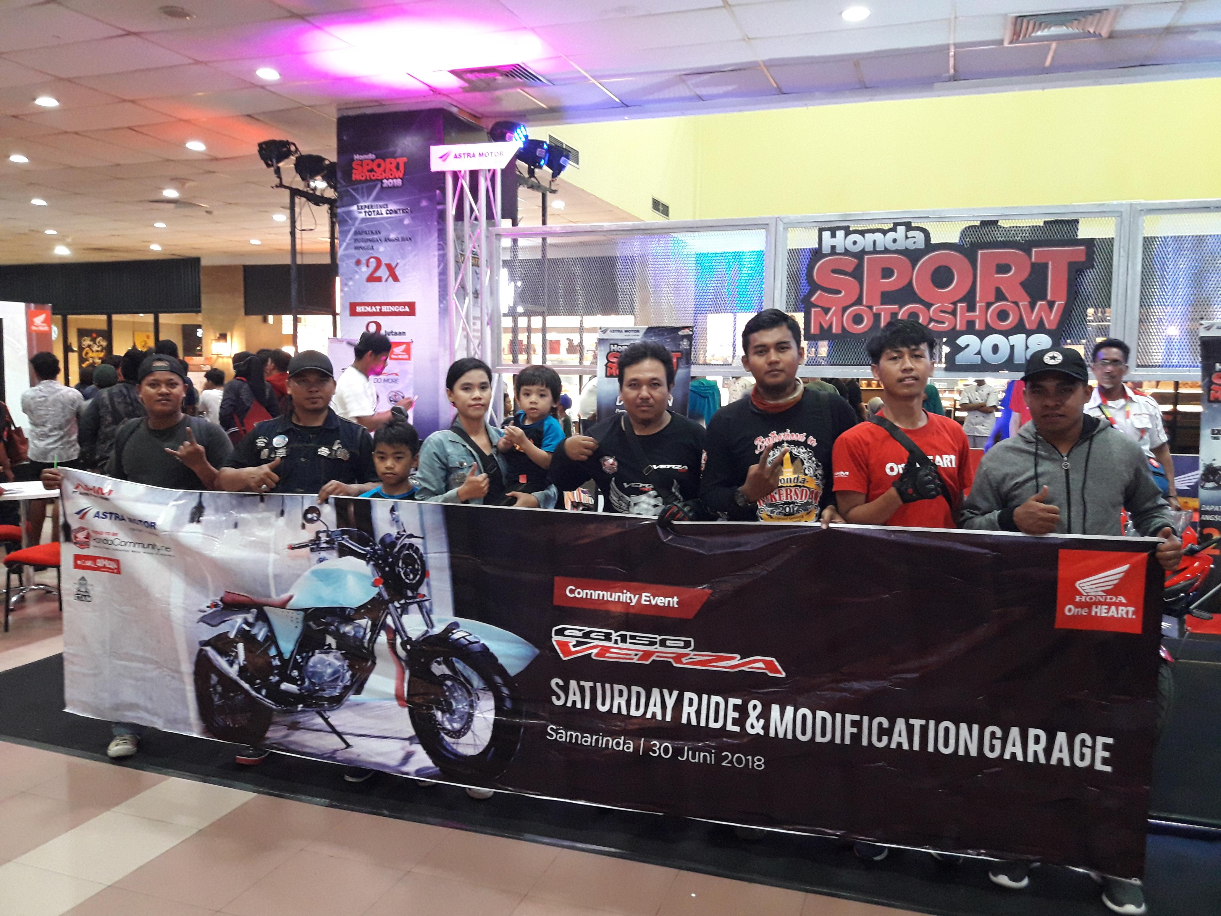 bertempat di hall samarinda central plaza, digelarlah community activity Verza Saturdayride bersama komunitas Honda Etam Kaltim yang dikemas bersamaan dengan acara Honda Sport Motoshow 2018. acara ini berlangsung meriah karena selain dimeriahkan oleh komunitas Honda juga turut dihadiri oleh komunitas mobile legend, komunitas gundam dan komunitas tamiya. selain itu juga turut di display Honda CB150 Verza yang sudah di modifikasi dengan tampilan japstyle yang dimana merupakan salah satu jenis aliran modifikasi yang cukup digandrungi pecinta modifikasi sepeda motor di tanah air.