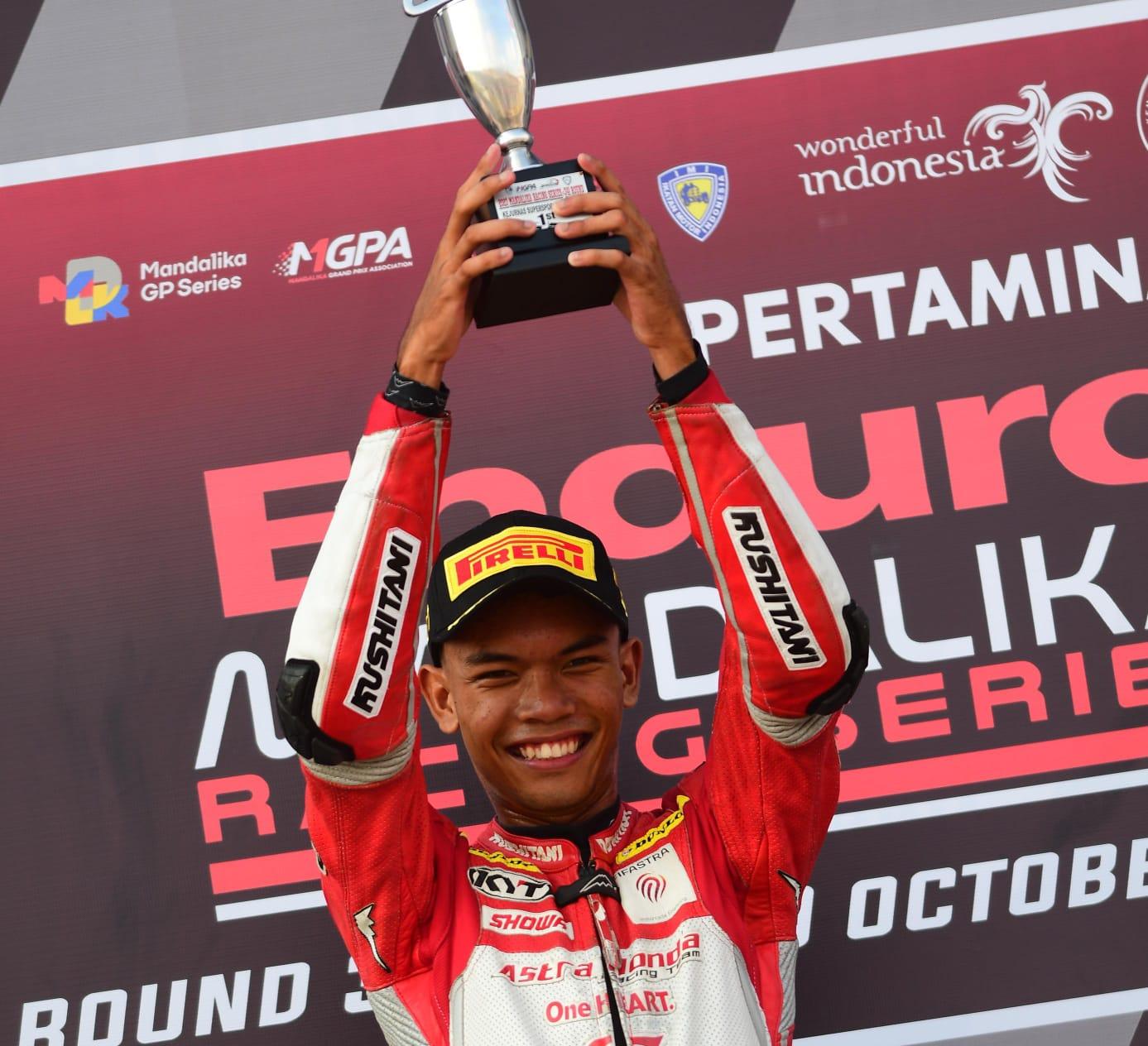 “Alhamdullillah, saya berhasil meraih juara umum nasional sport 250 Mandalika Racing Series. Kemenangan yang sangat menggembirakan saya persembahkan untuk pecinta balap Honda, keluarga yang selalu mendukung saya dan tentunya Astra Honda Racing Team yang telah memberikan dukungan luar biasa. Ini menjadi sinyal yang bagus untuk saya dan CBR250RR. Juara nasional sudah saya genggam, kini saatnya untuk fokus di ajang ARRC, untuk dapat meraih gelar juara Asia AP250. Mohon doa dan dukungannya,” ujar Rheza.