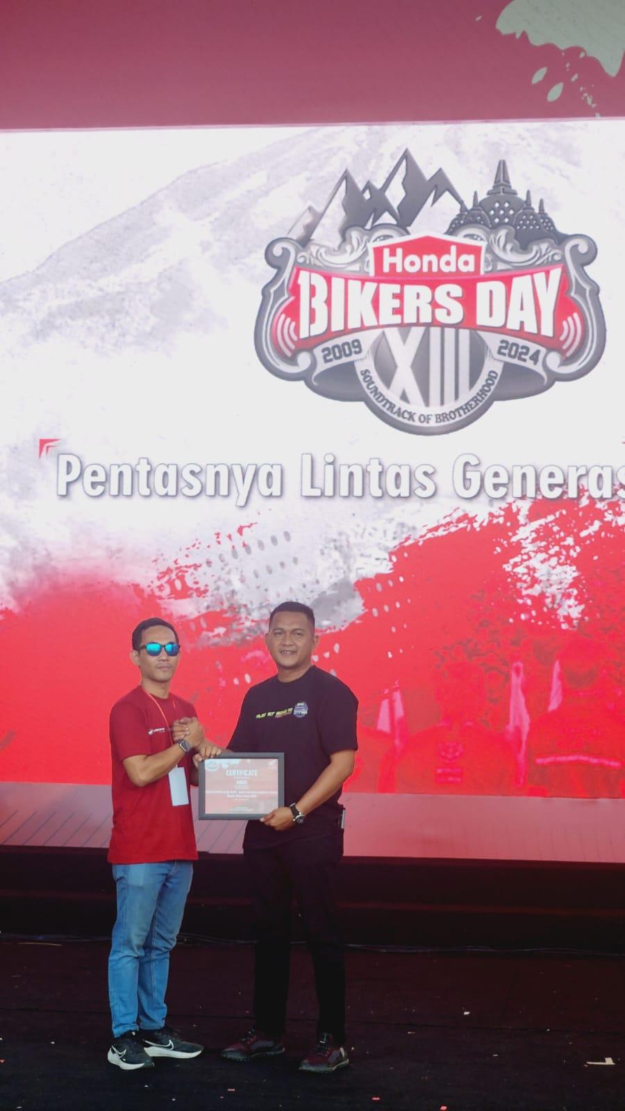 Brad Andri dari CB150X ADV.ID Chapter Samarinda ini pun mendapat apresiasi piagam penghargaan karena keinginannya yang begitu kuat hingga berhasil menghadiri 4 lokasi gelaran HBD 2024. Mulai dari HBD Regional Sumatera, Kalimantan, Sulawesi hingga HBD tingkat nasional di DODIKLATPUR Kodam IV Diponegoro, Klaten, Jawa Tengah.