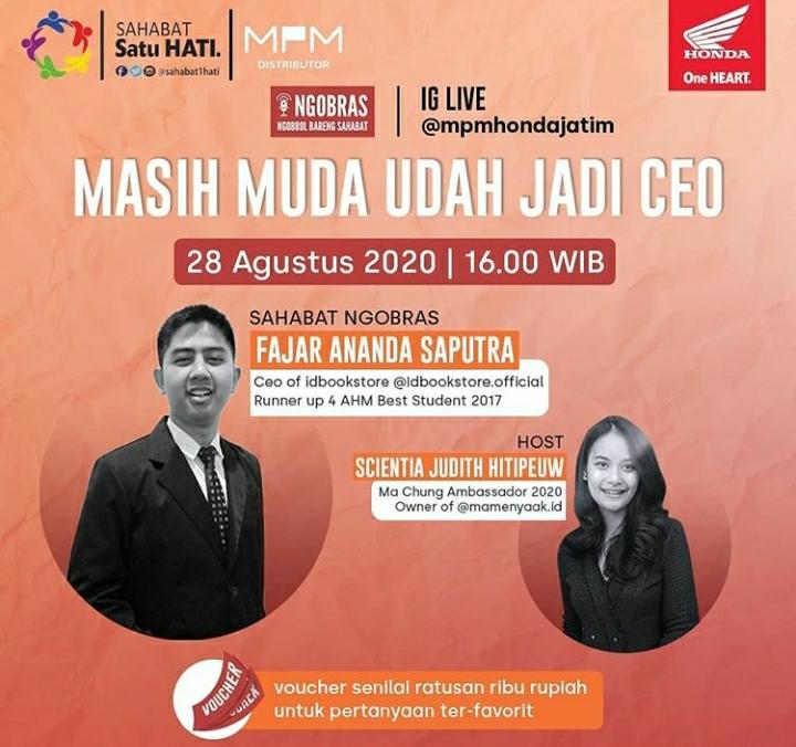 Selain Fajar, sebelumnya alumni AHMBS 2018 dan Best of The Best AHMBS 2018 Nasional, Azizatus Sa'diyah juga berbagi pengalaman serta tips lewat siaran Instagram @mpmhonfajatim dan @sahabat1hati pada 13 Agustus 2020.