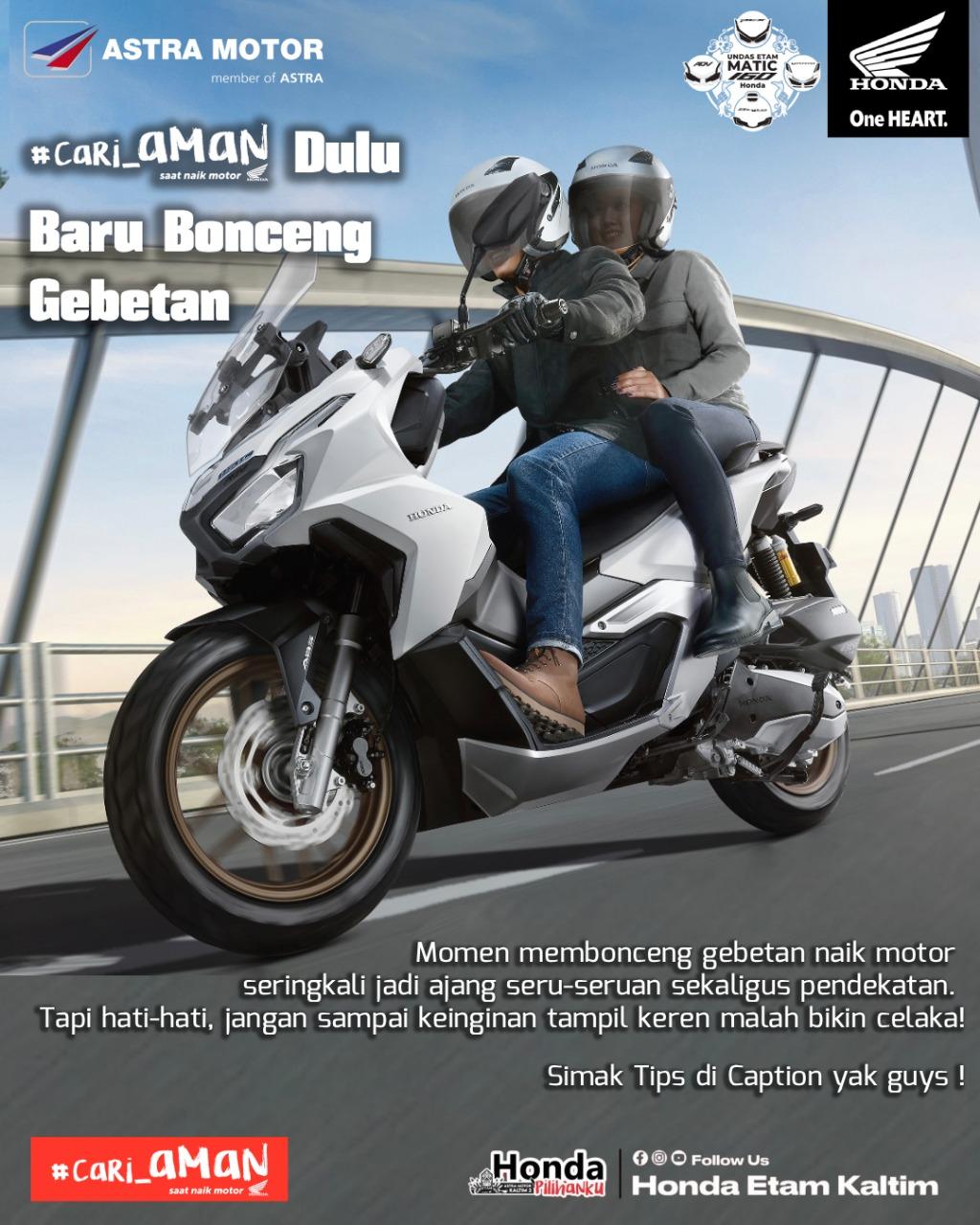 Kalau kamu sering boncengin gebetan, jangan cuma mikirin penampilan, ya! Ingat, gebetan akan lebih terkesan dengan pengendara yang bertanggung jawab dan bikin dia merasa aman.